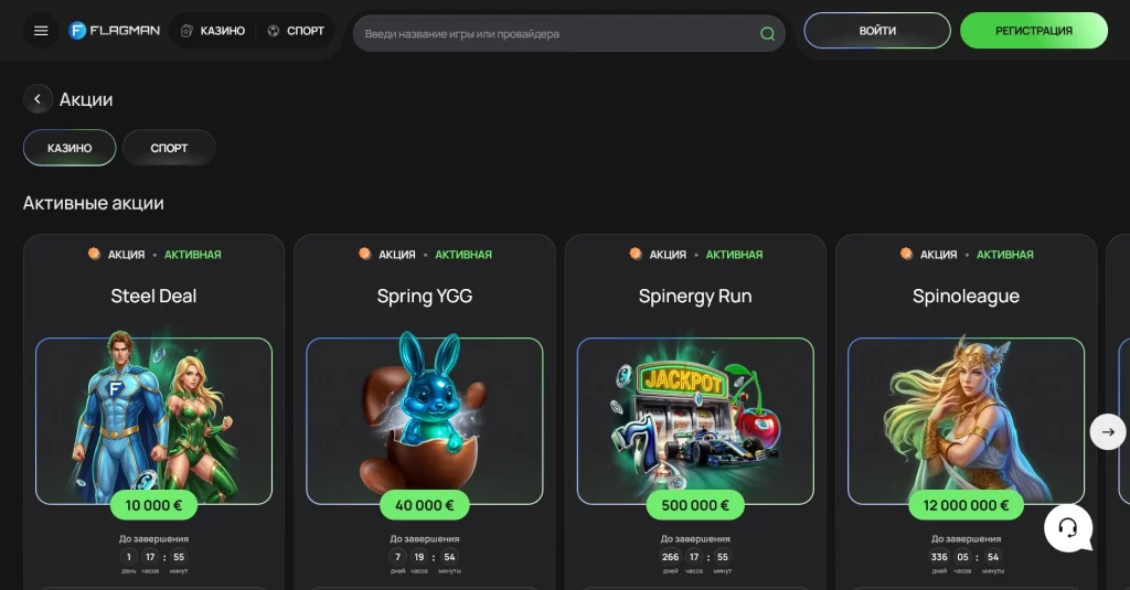 С бонусной стороны Flagman смотрится интересно прежде всего за счет вариативности. На части валютных счетов приветственный пакет включает 150% на первый депозит, до 500 FS на второй и 75% на третий, а смотреть похожие механики можно и в разделе приветственных бонусов. При этом важно учитывать вейджер и ограничение на максимальный выигрыш: бонусы здесь рассчитаны не на “легкий старт”, а на более дисциплинированную игру.