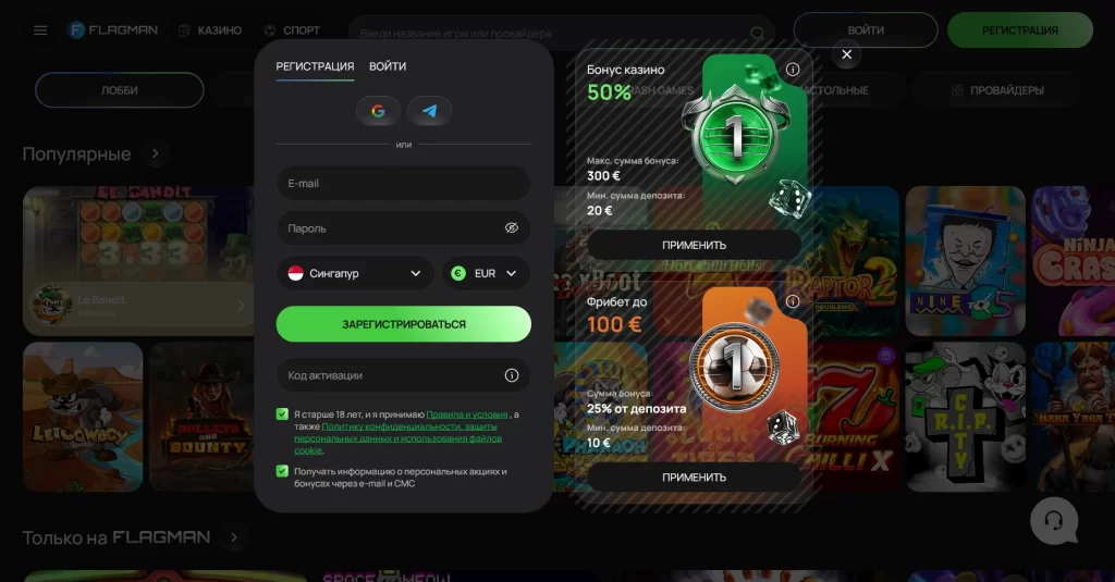 Какие бонусы доступны новым игрокам Flagman?