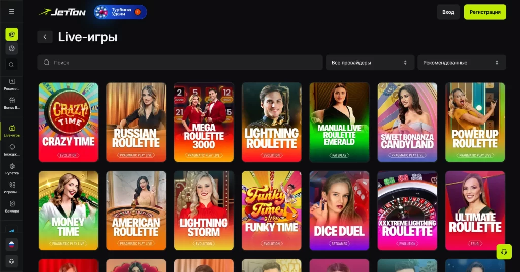 Игровой каталог JetTon закрывает сразу несколько сценариев. Здесь есть слоты, live-казино, быстрые игры, blackjack, baccarat, roulette и шоу-форматы. За счёт 93 провайдеров библиотека воспринимается не как узкая нишевая витрина, а как полноценное мультивертикальное лобби, где можно переходить от классических автоматов к live-столам и crash-механикам без ощущения дефицита выбора.