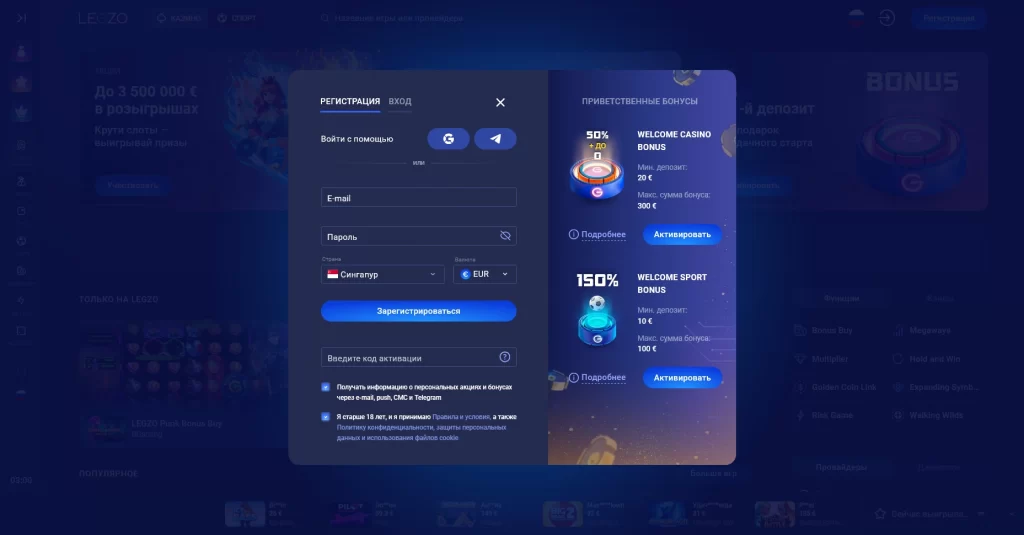 Ключевые условия Legzo Casino