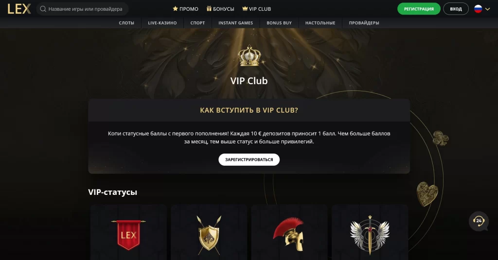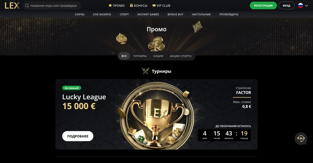 Lex Casino работает с 2024 года и делает ставку на широкий каталог игр, гибкую кассу, мобильный формат и статусную систему для активных игроков. Это не узкоспециализированное казино, а площадка, где объединены слоты, live-игры, instant games и спортивный раздел.