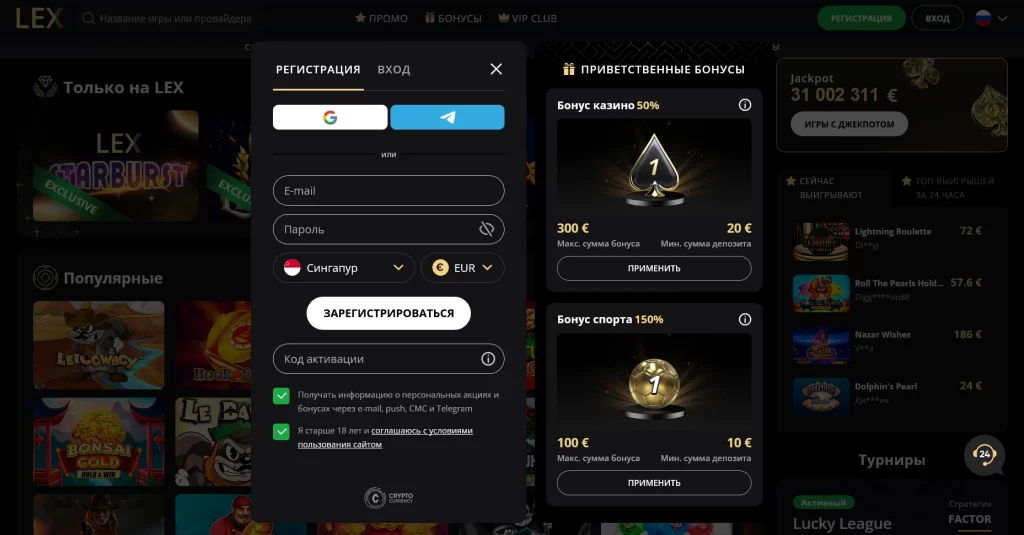 Lex Casino — универсальная платформа для казино, live и спорта